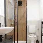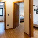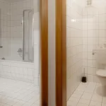 Apartmán Bergblick Appartements má 9 pokojů. Tento pokoj také má parketovou podlahu a koupelnu s samostatnou toaletou a sprchou.